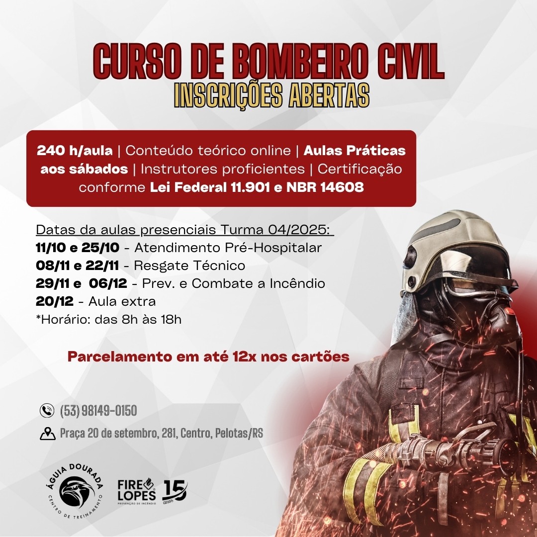 📣Inscrições abertas para a última turma do ano📍 Aulas presenciais aos sábados das 8h às 18h em Pelotas: CT com estrutura completa